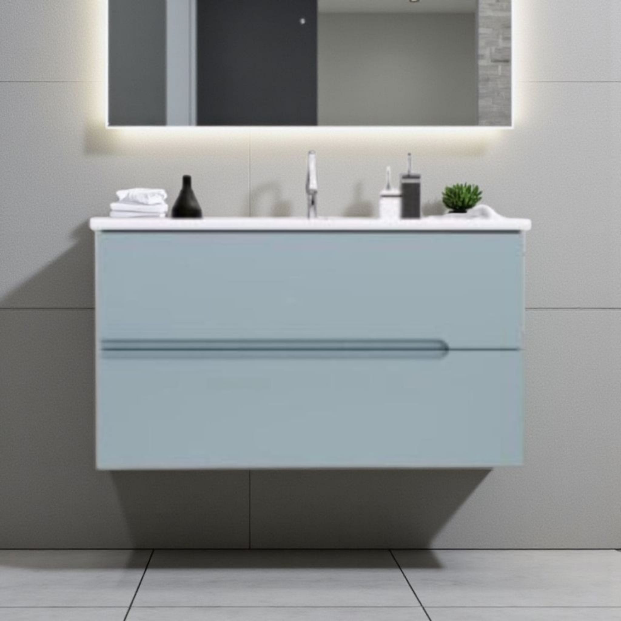 כיור אינטגרלי ומראה מלבנית מרחפת – כלולים במחיר.