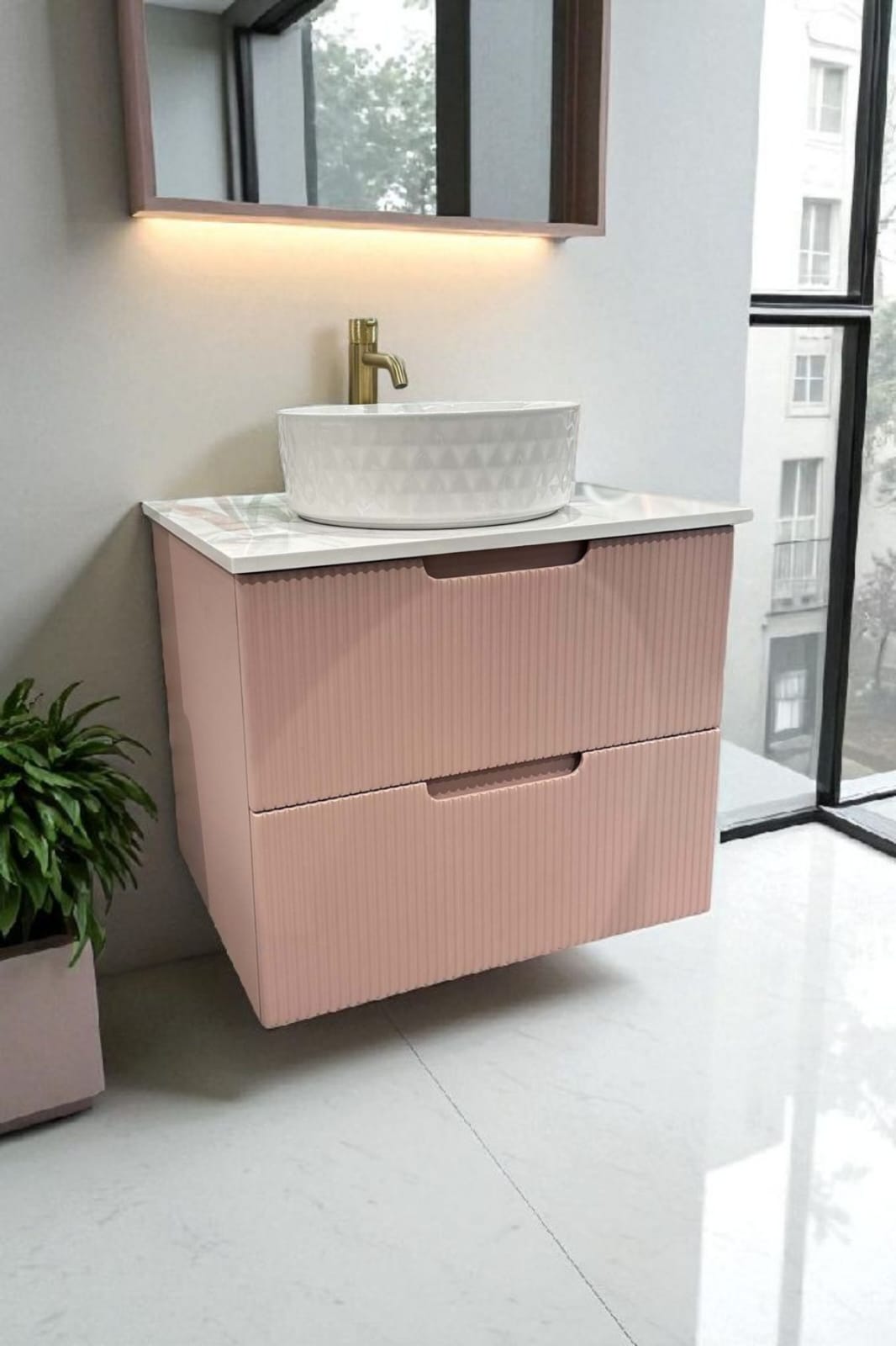 כיור אינטגרלי ומראה מלבנית מרחפת – כלולים במחיר.
