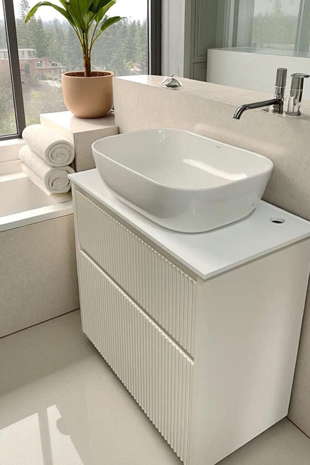 כיור אינטגרלי ומראה מלבנית מרחפת – כלולים במחיר.