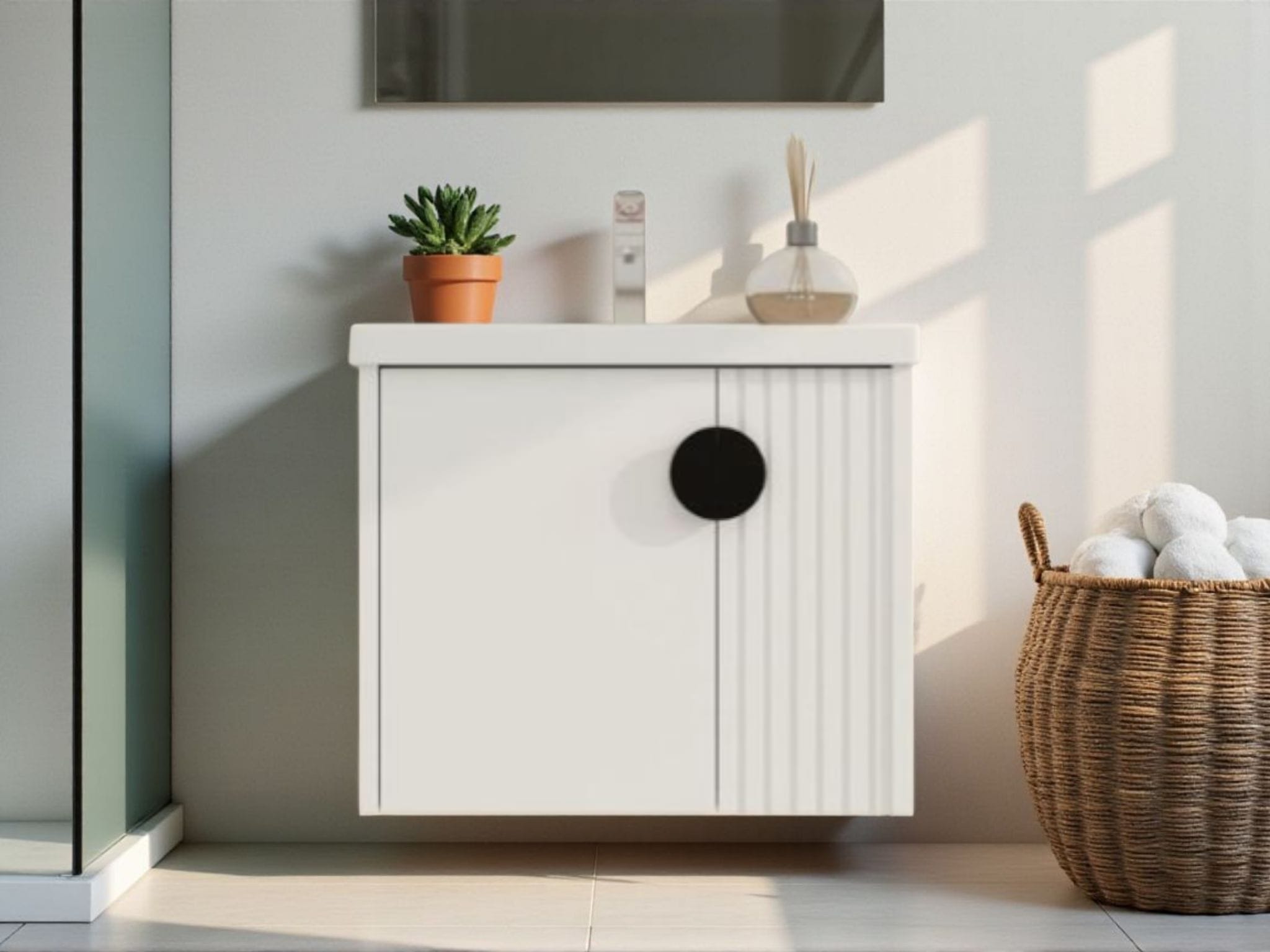 כיור אינטגרלי ומראה מלבנית מרחפת – כלולים במחיר.