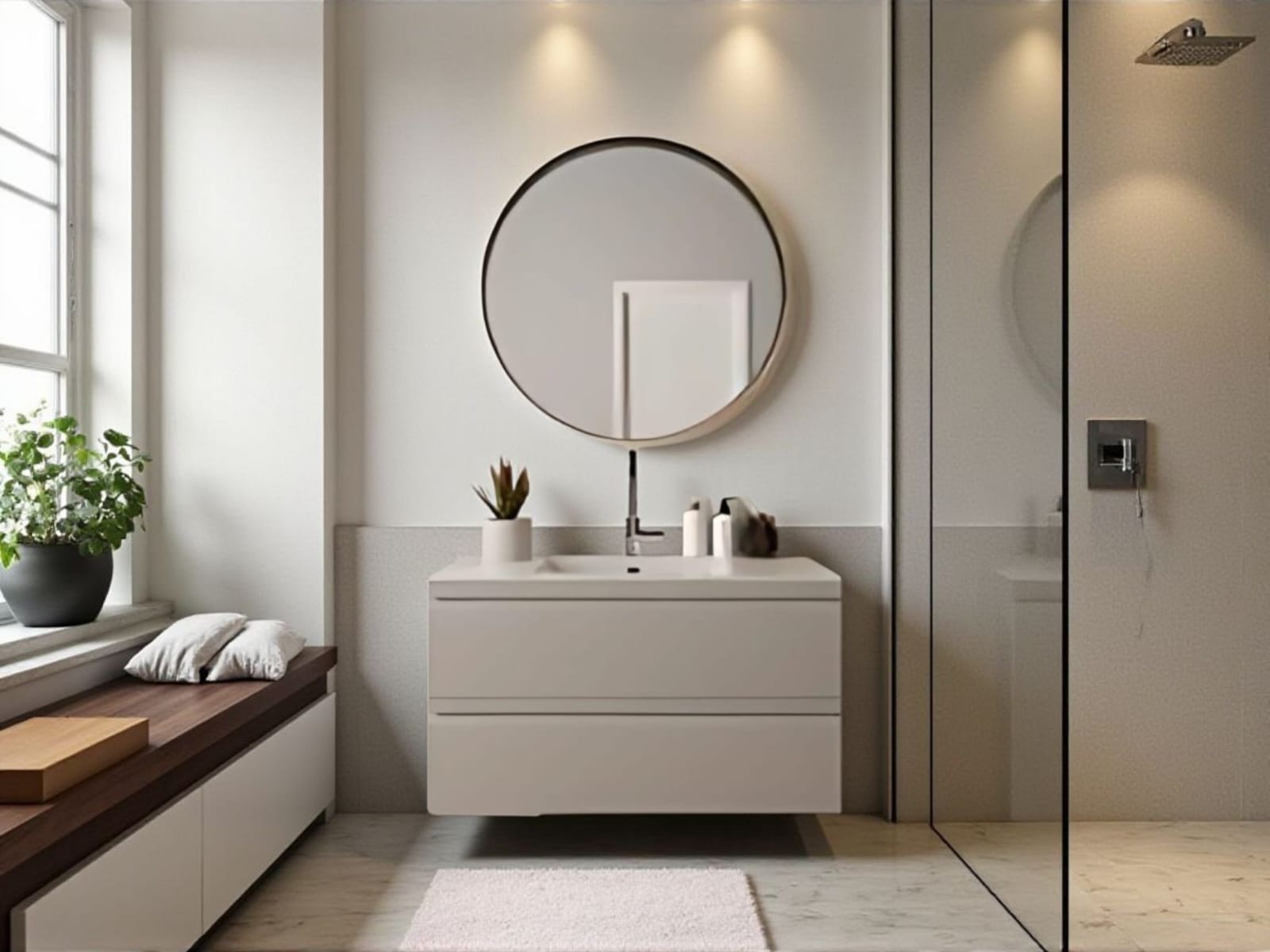 כיור אינטגרלי ומראה מלבנית מרחפת – כלולים במחיר.