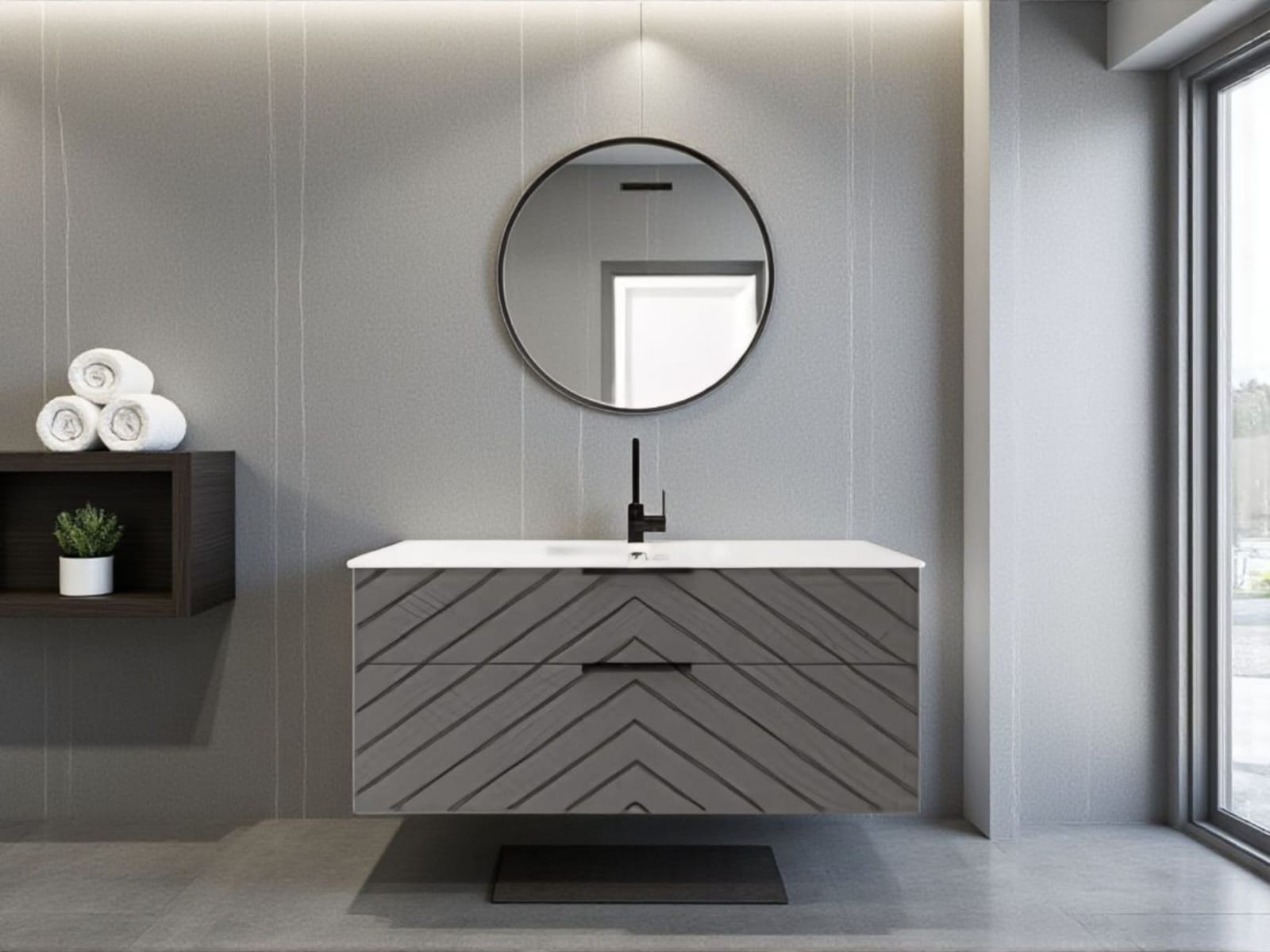 כיור אינטגרלי ומראה מלבנית מרחפת – כלולים במחיר.