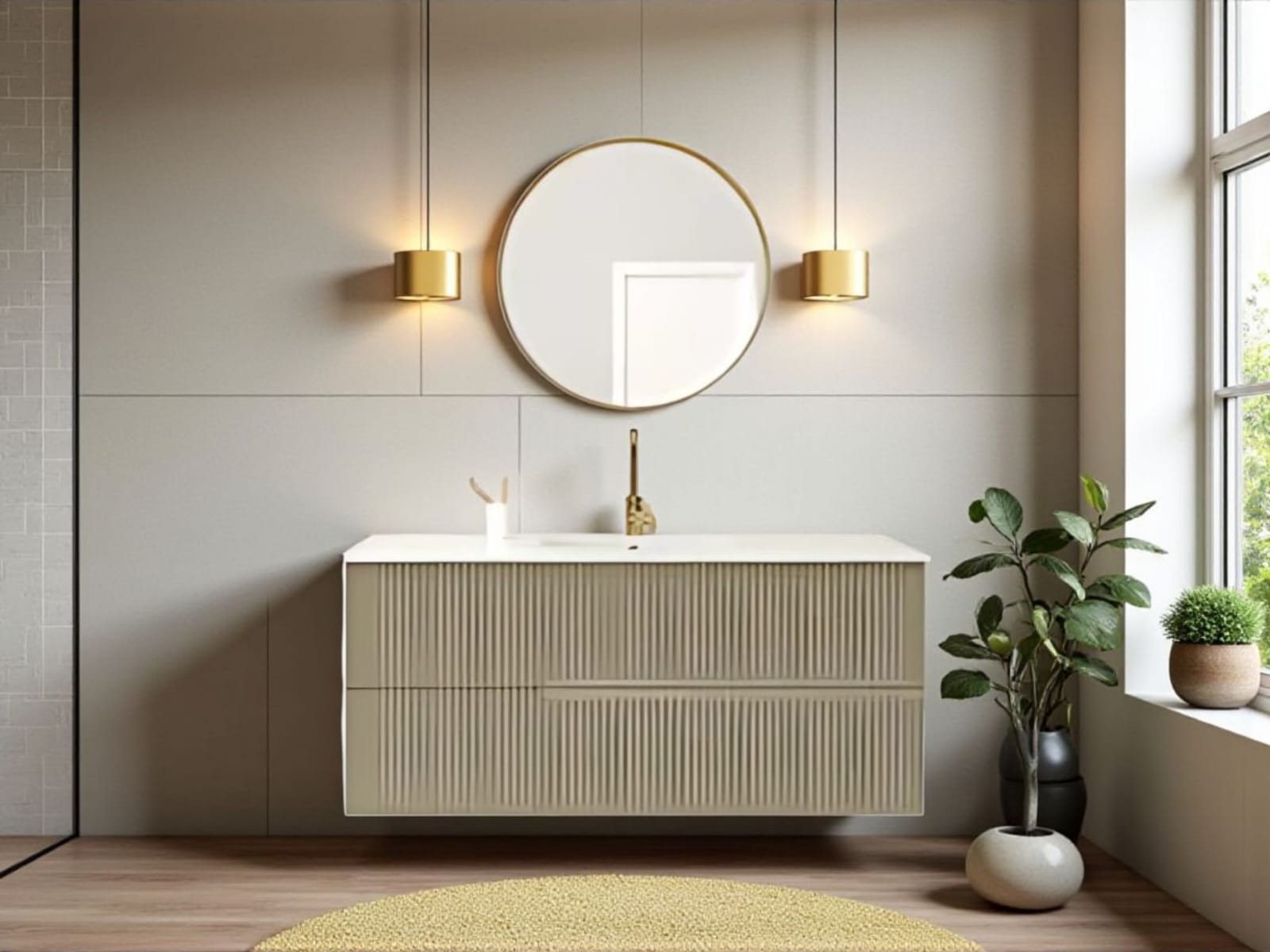 כיור אינטגרלי ומראה מלבנית מרחפת – כלולים במחיר.