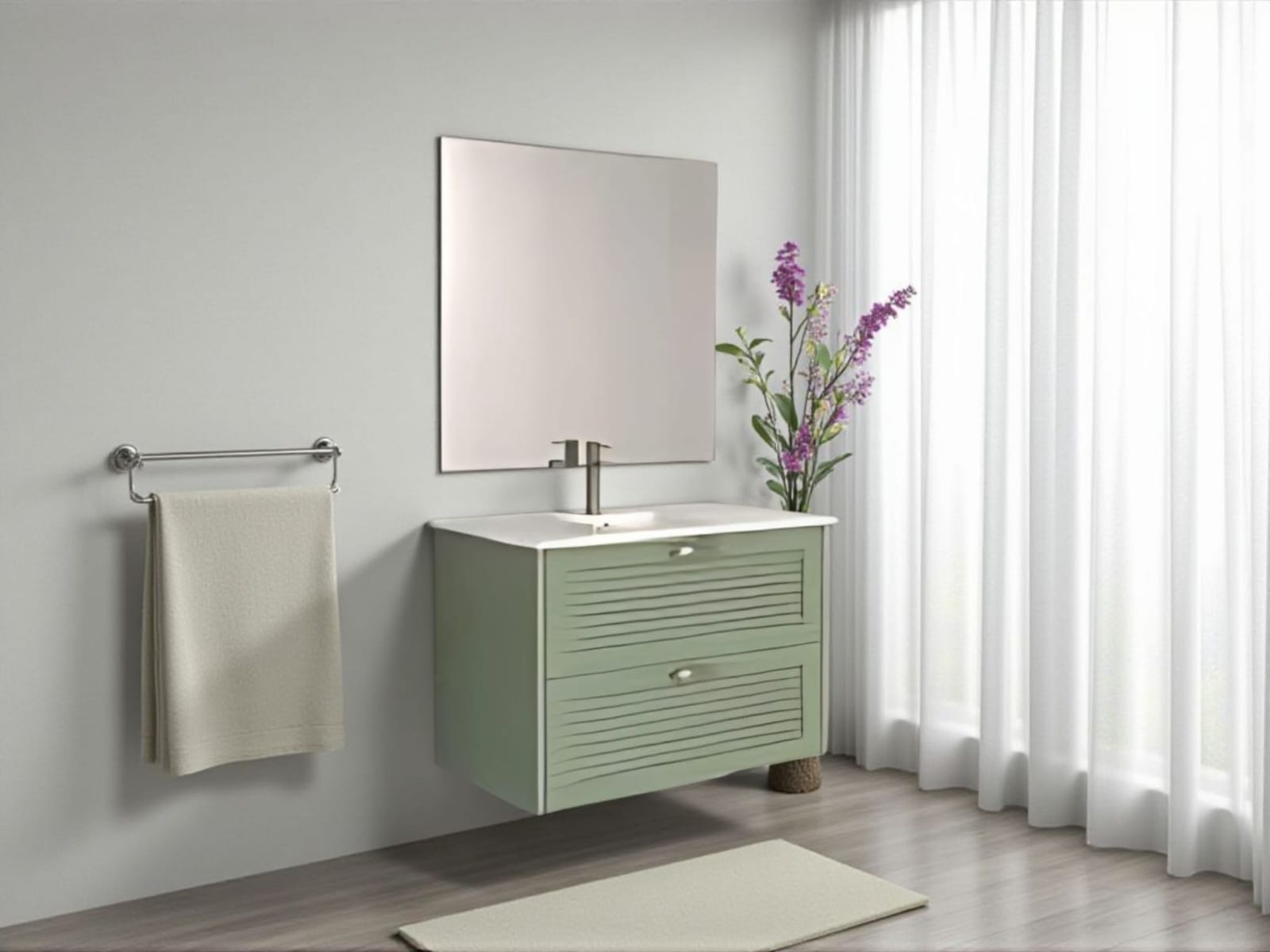כיור אינטגרלי ומראה מלבנית מרחפת – כלולים במחיר.