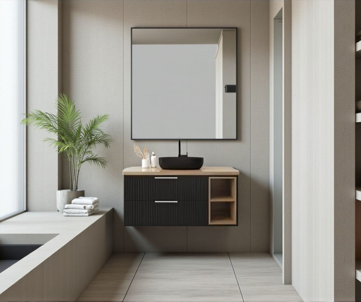 כיור אינטגרלי ומראה מלבנית מרחפת – כלולים במחיר.