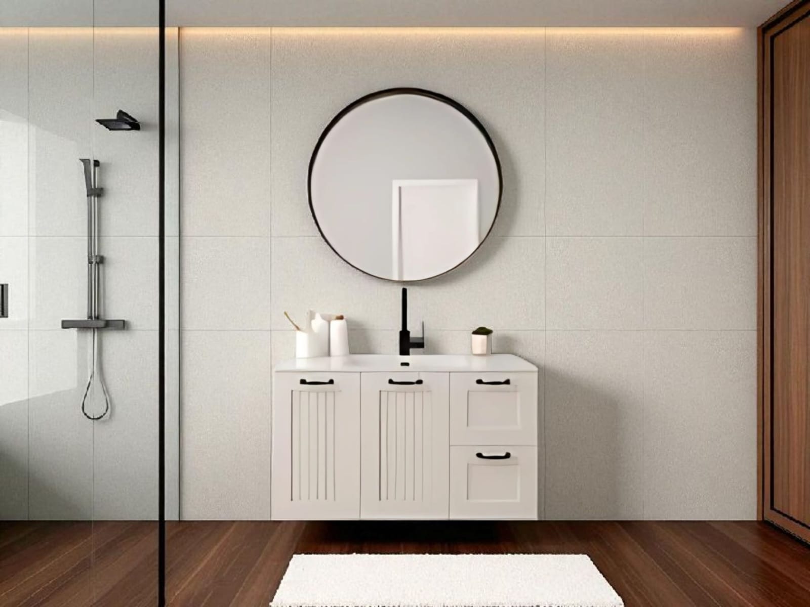 כיור אינטגרלי ומראה מלבנית מרחפת – כלולים במחיר.