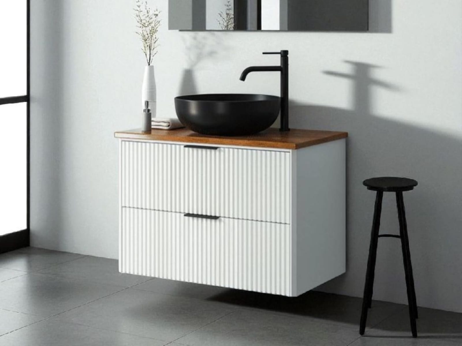 כיור אינטגרלי ומראה מלבנית מרחפת – כלולים במחיר.