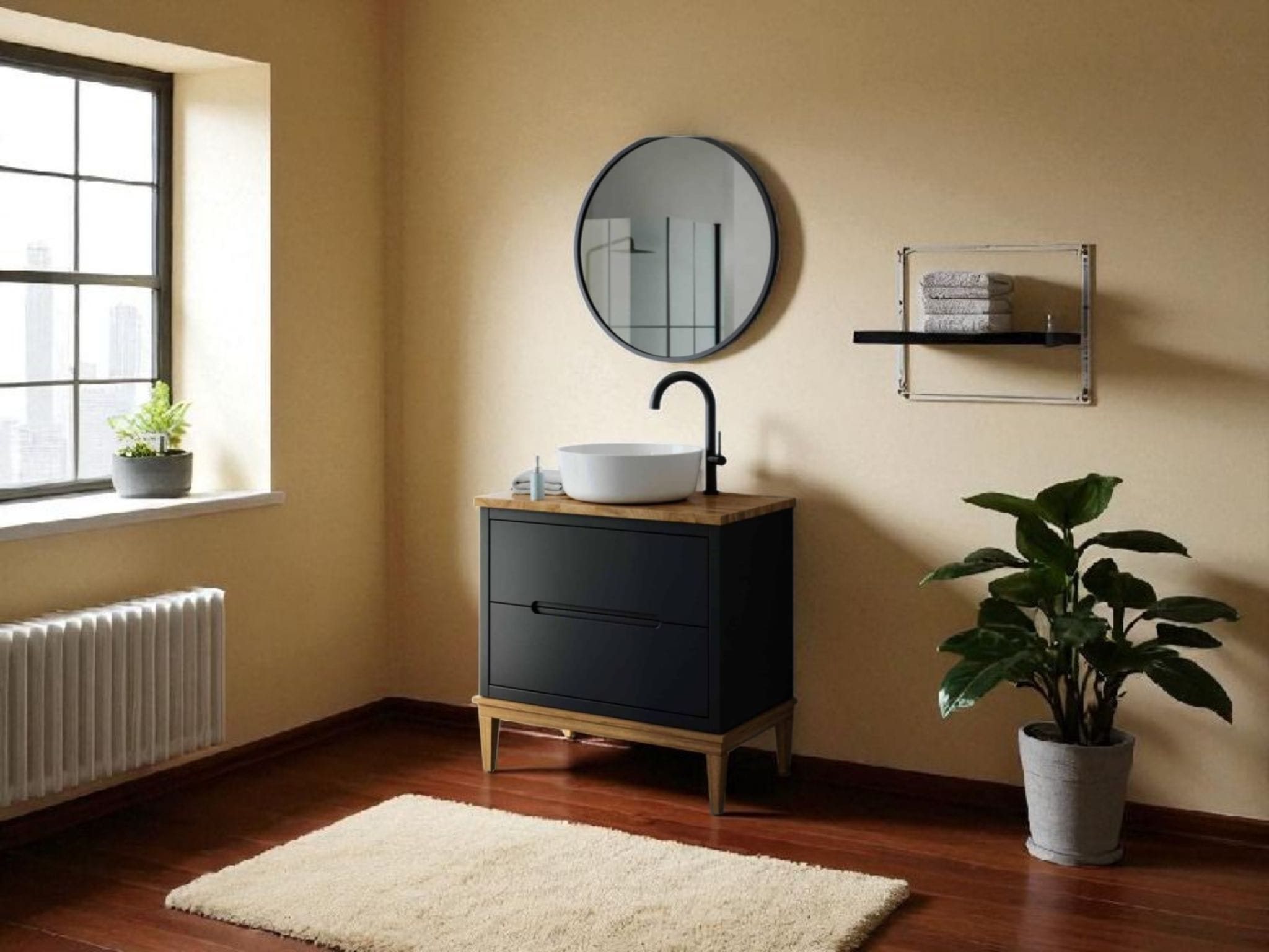כיור אינטגרלי ומראה מלבנית מרחפת – כלולים במחיר.
