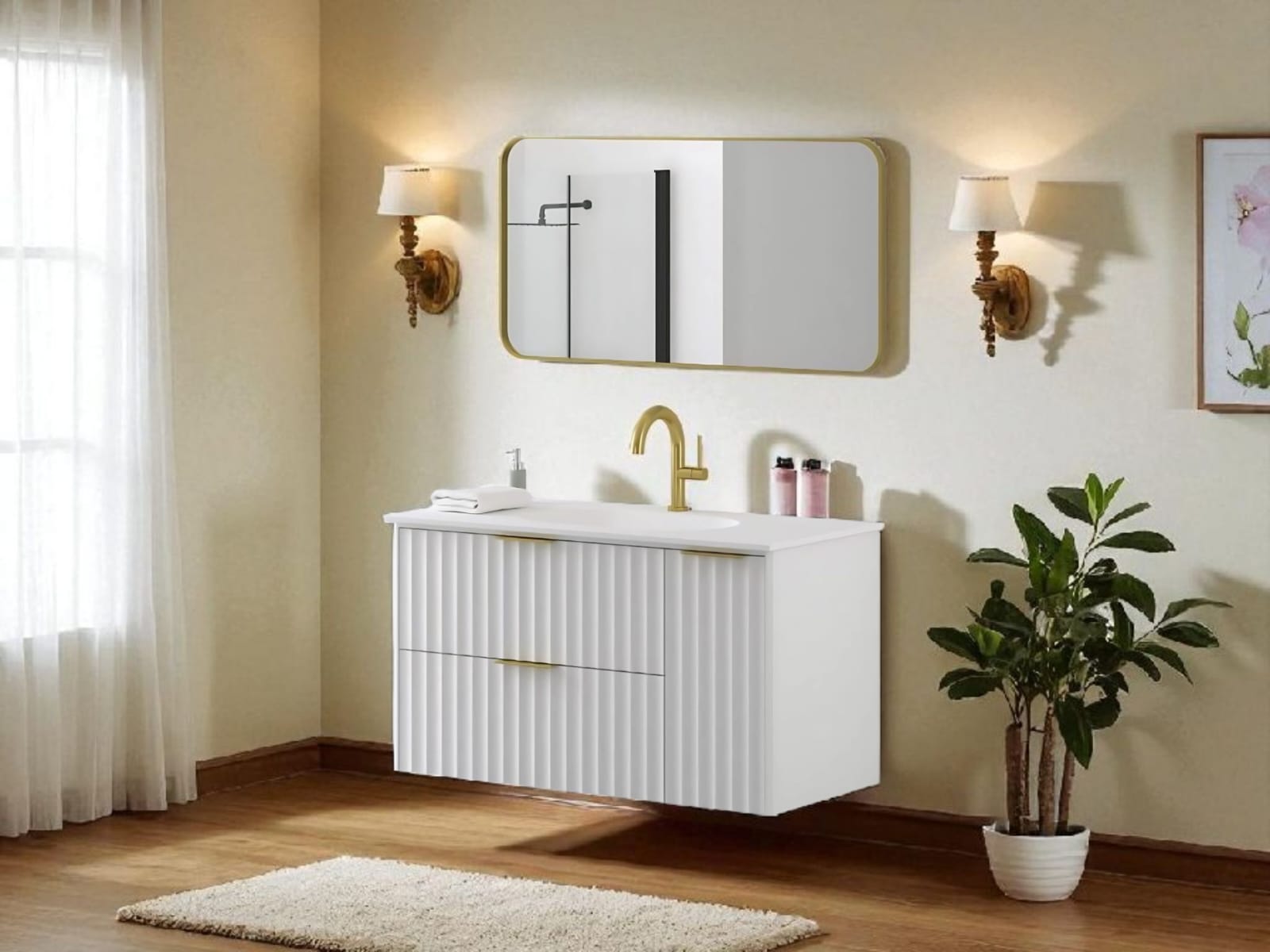 כיור אינטגרלי ומראה מלבנית מרחפת – כלולים במחיר.