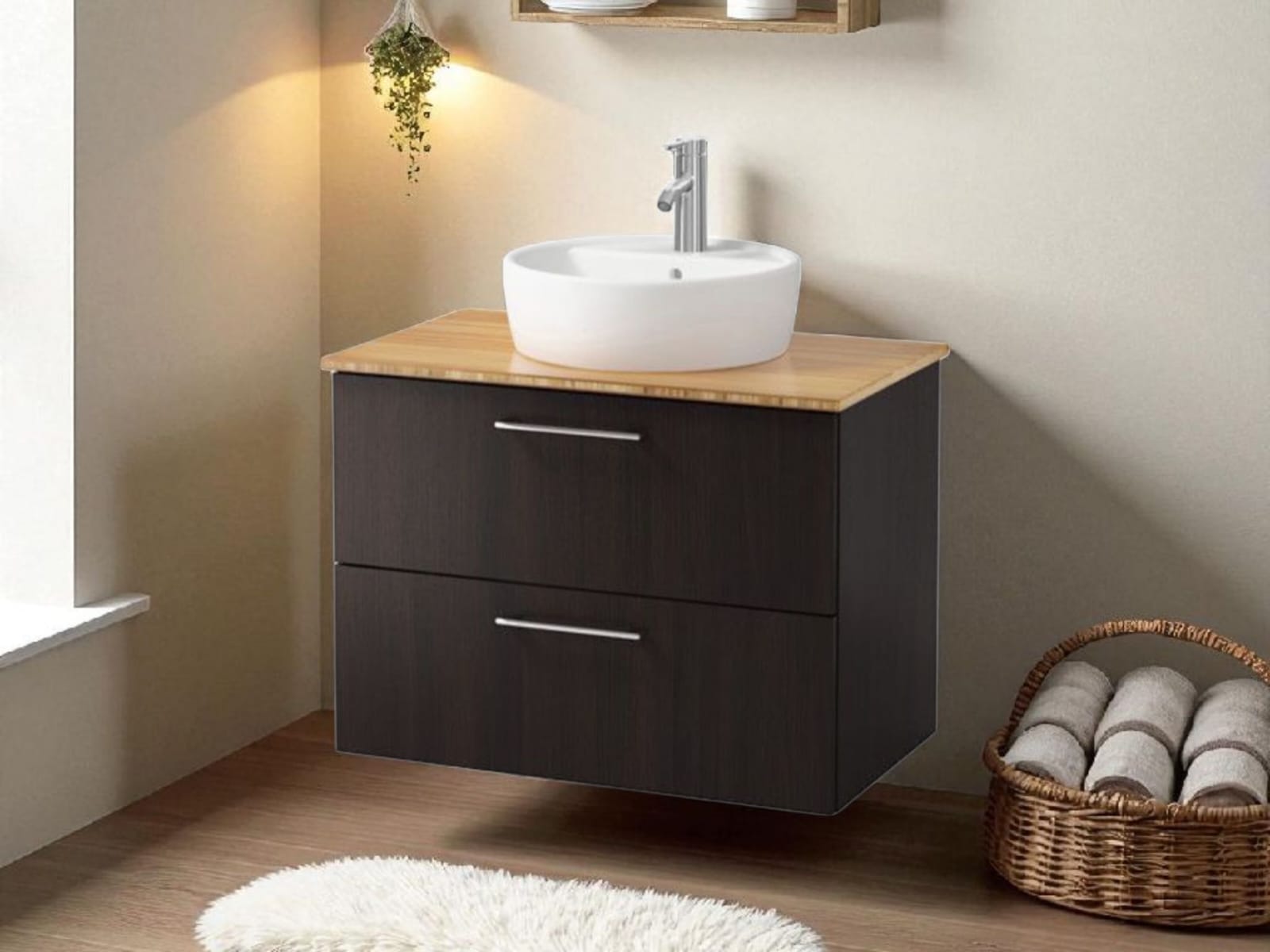 כיור אינטגרלי ומראה מלבנית מרחפת – כלולים במחיר.