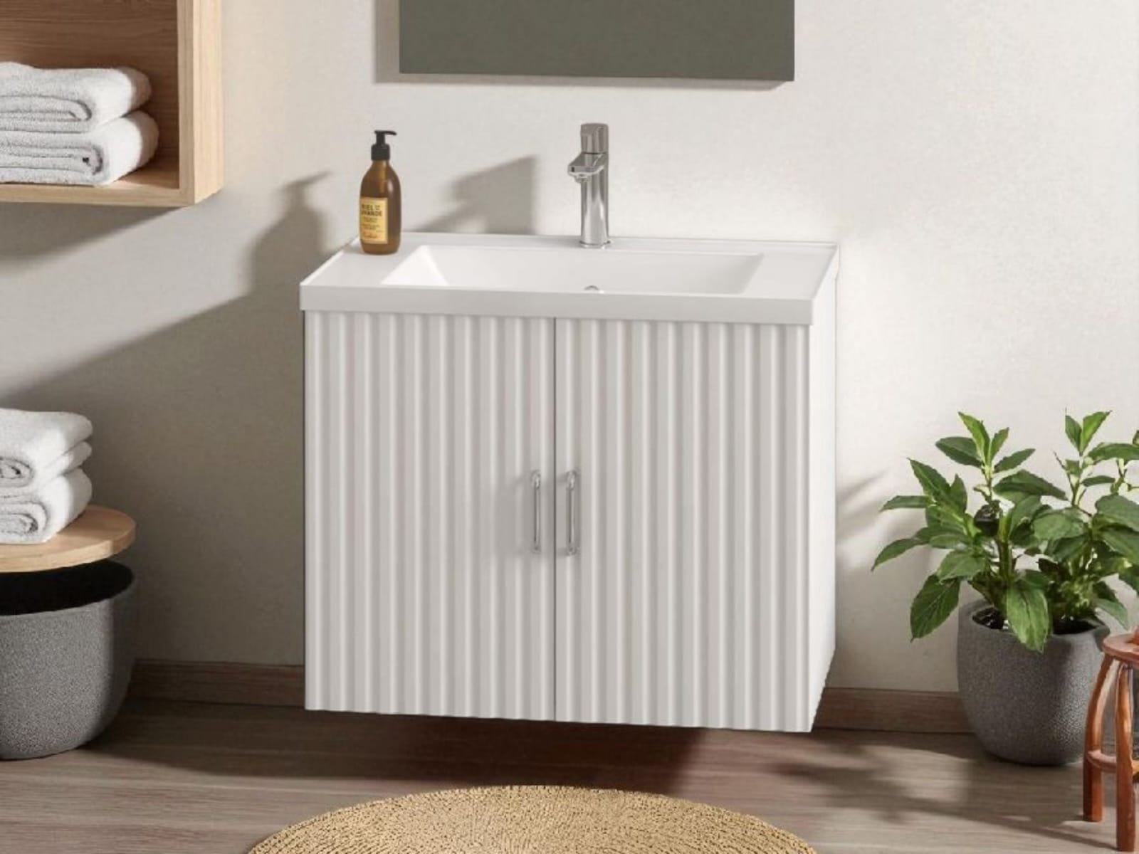 כיור אינטגרלי ומראה מלבנית מרחפת – כלולים במחיר.