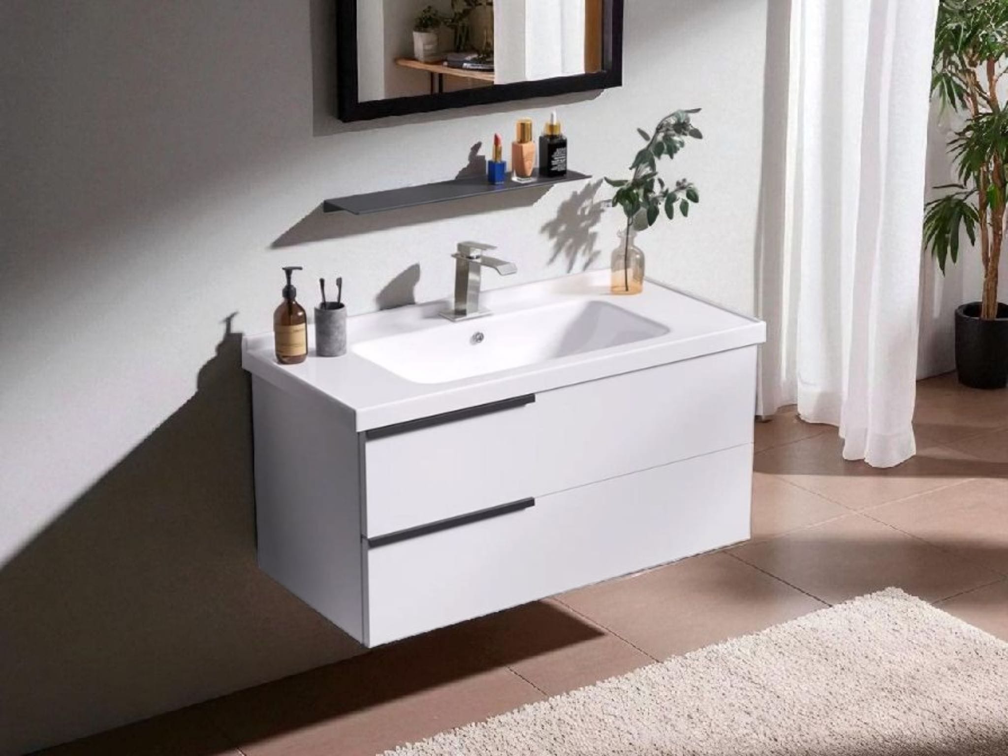 כיור אינטגרלי ומראה מלבנית מרחפת – כלולים במחיר.
