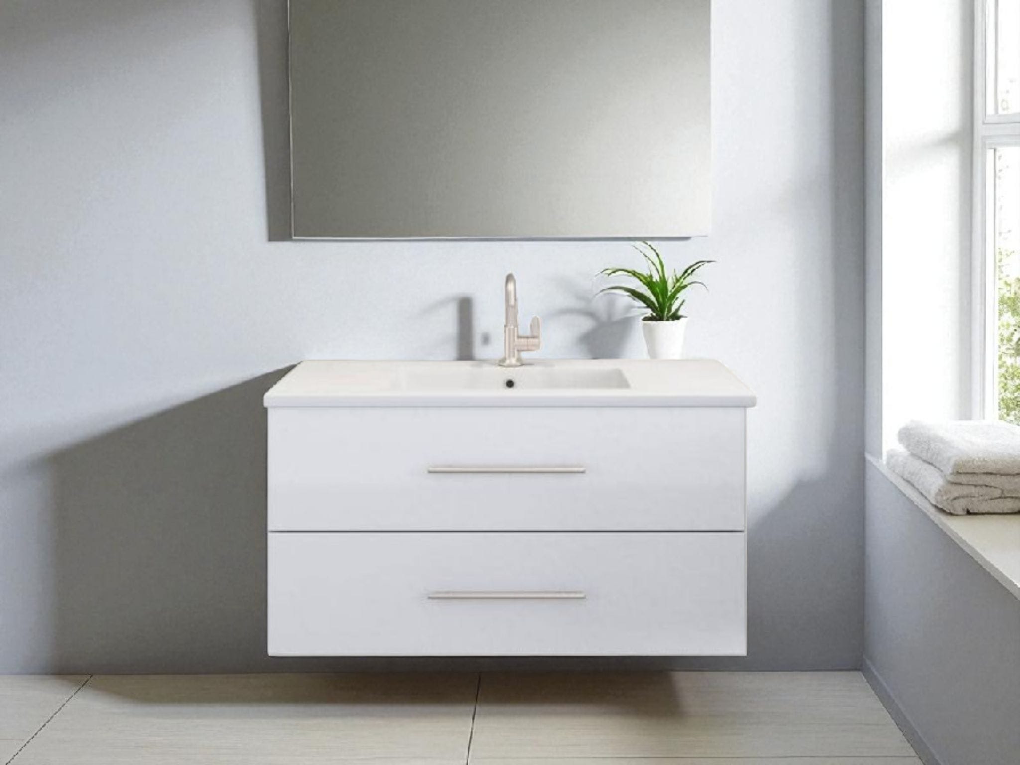 כיור אינטגרלי ומראה מלבנית מרחפת – כלולים במחיר.